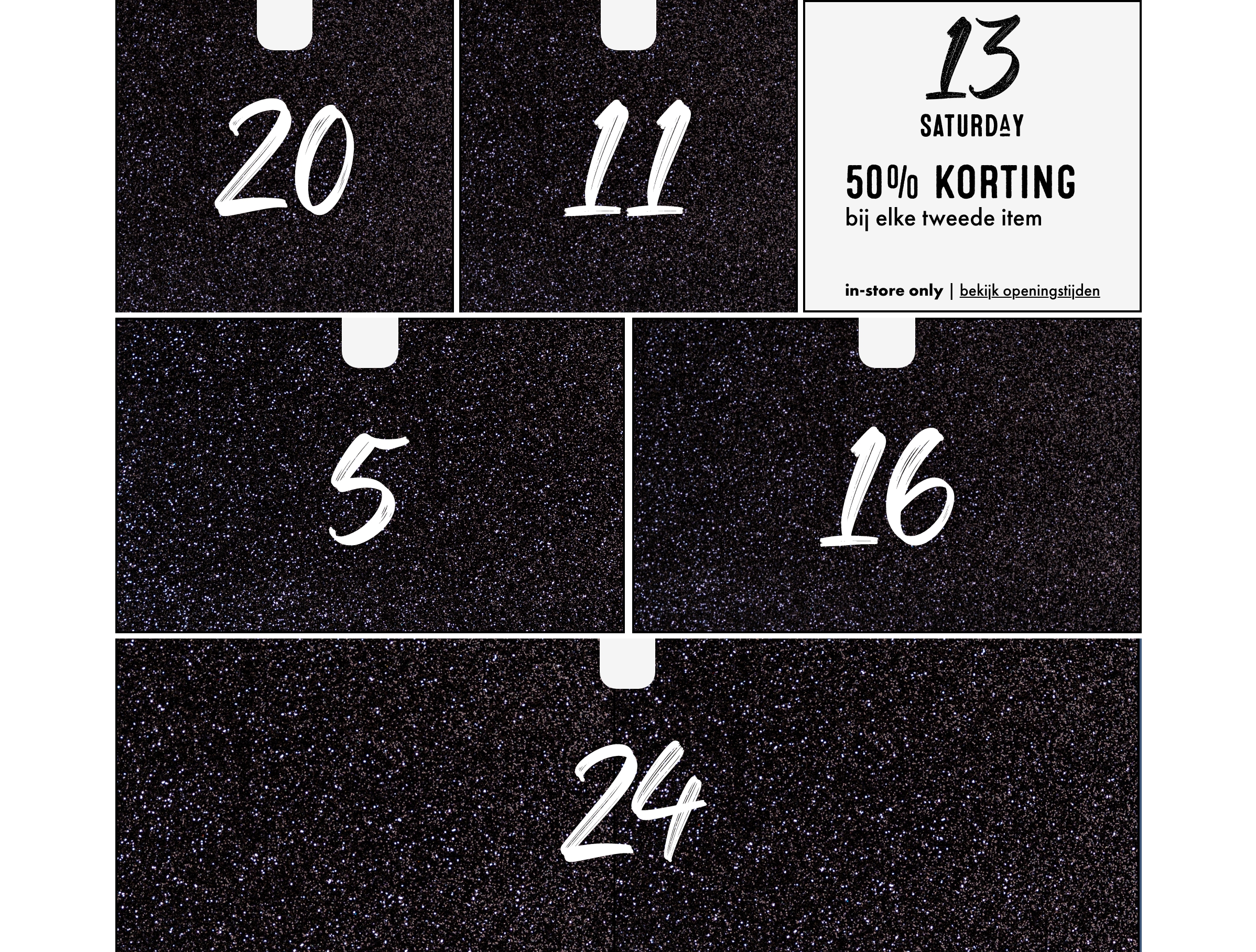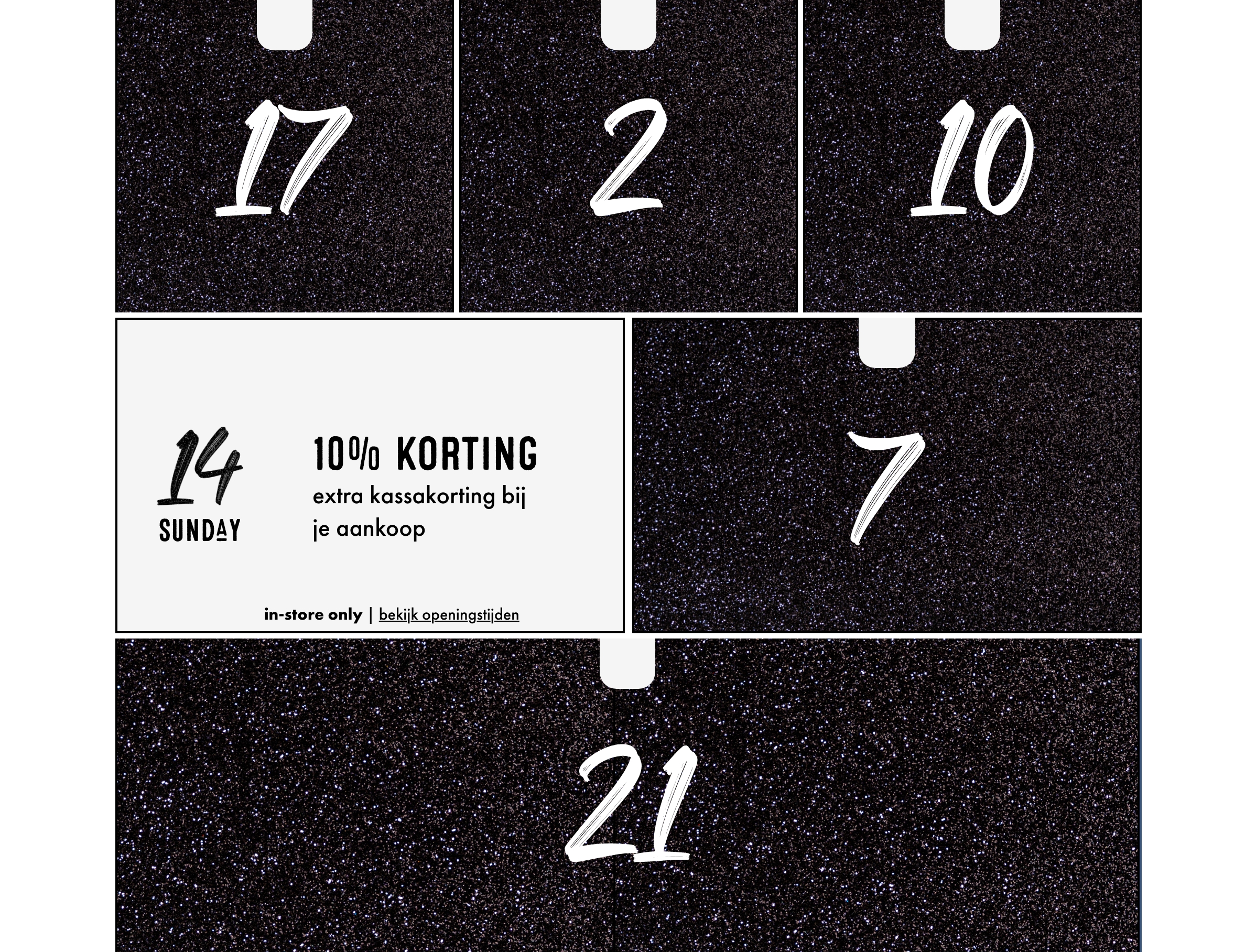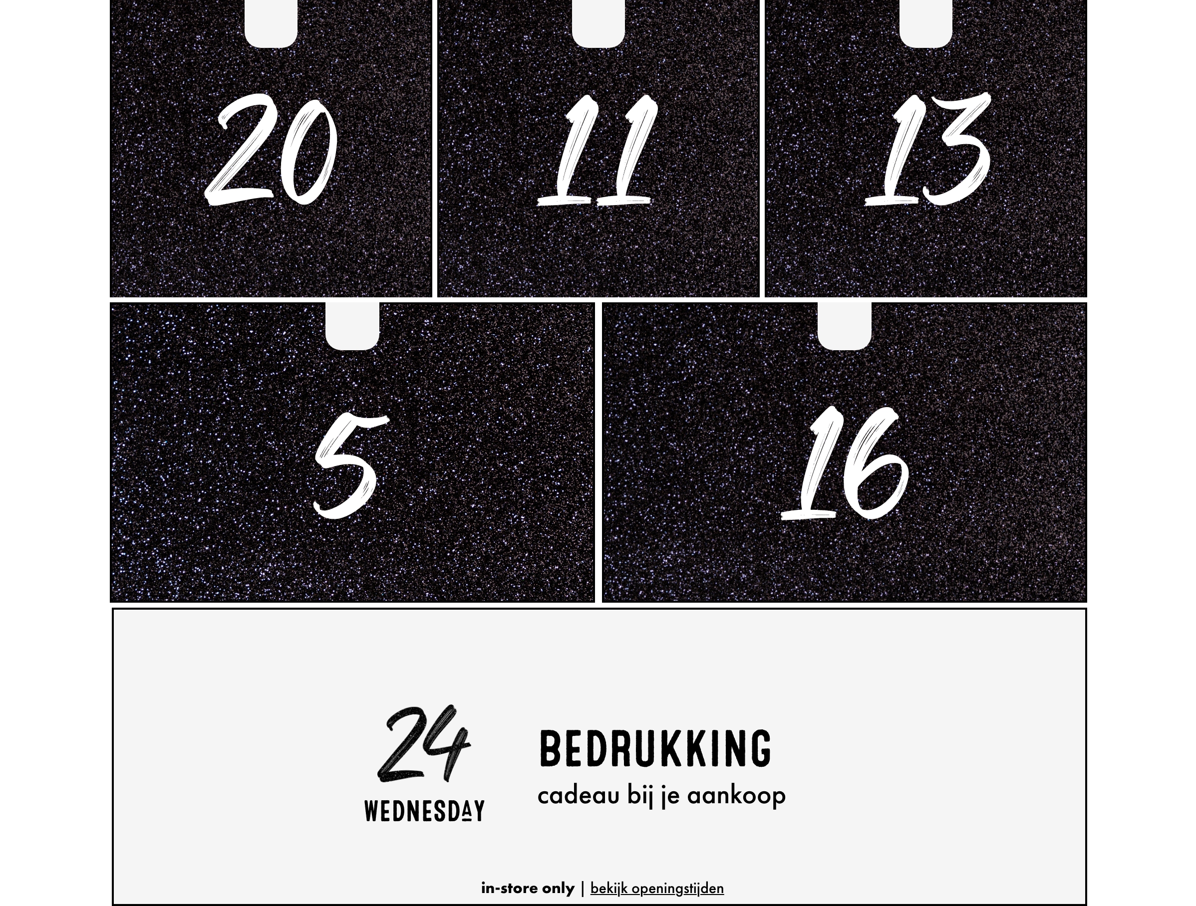Ontdek elke dag een nieuw cadeautje uit de Silvercreek Adventskalender. Dit jaar zit de kalender vol exclusieve aanbiedingen, gratis goodies en magische winacties. Maak van december een maand vol kleine geluksmomenten, voor jezelf of voor een ander. Alle cadeaus en acties uit de adventskalender zijn uitsluitend geldig in onze flagship store in Breda*